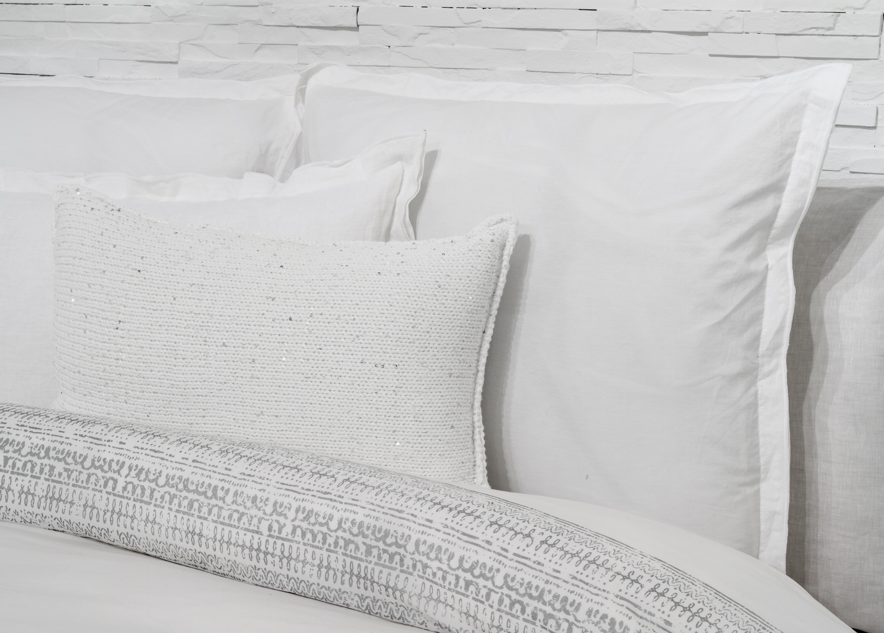 Diese Bettwäsche von Flamant besticht durch ihre Lässigkeit und ihr edel glänzendes Dessin. Kissen und Bettbezug sind mit doppeltem, umlaufendem Stehsaum und einer feinen weißen Paspelierung am Rand gearbeitet. Der Bettbezug hat auf der Oberseite einen gedruckten, leicht silbern glänzenden Ornament-Streifen. Das sehr weiche und anschmiegsame stonewashed Tencel-Baumwollgewebe bietet ein traumhaft schönes Schlafvergnügen. Der Kissenbezug hat eine verdeckte Knopfleiste, der Bettbezug einen Reißverschluss.
