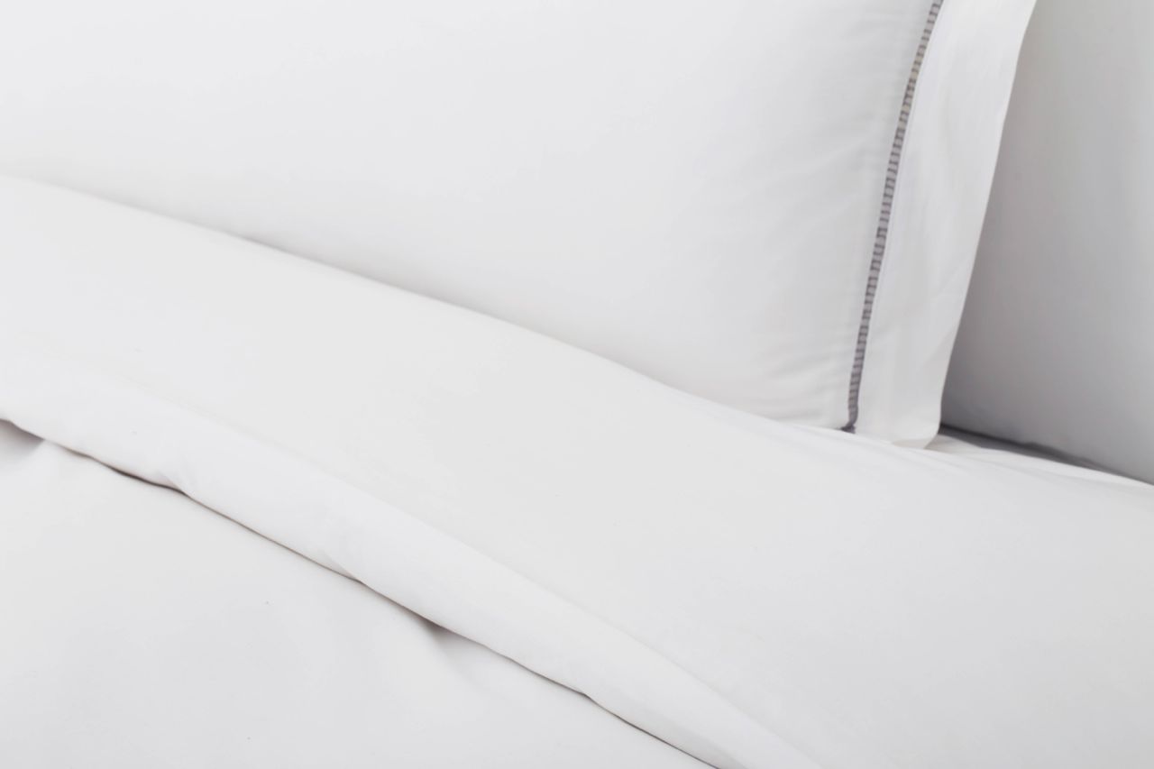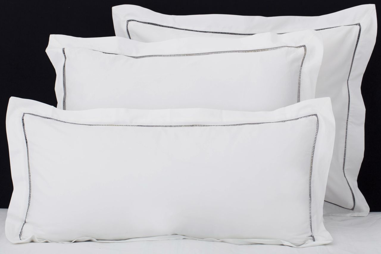 Die feine Bettwäsche Hemstitch von Flamant besticht durch ihre schlichte Eleganz und ist etwas ganz Besonderes. Durch den feinen grauen Hohlsaum wirkt das Kissen schlicht und besonders edel. Der Bettbezug ist in Uni-Weiß gehalten, so dass die mit umlaufendem Hohlsaum ausgestatteten Kissen sich schön herausheben. Die hochwertige Bettwäsche ist äusserst weich und sehr anschmiegsam und gleichzeitig durch die eingewebten Bambusfasern sehr saugfähig. Kissenbezug und Bettbezug sind mit einer verdeckten Knopfleiste gearbeitet.