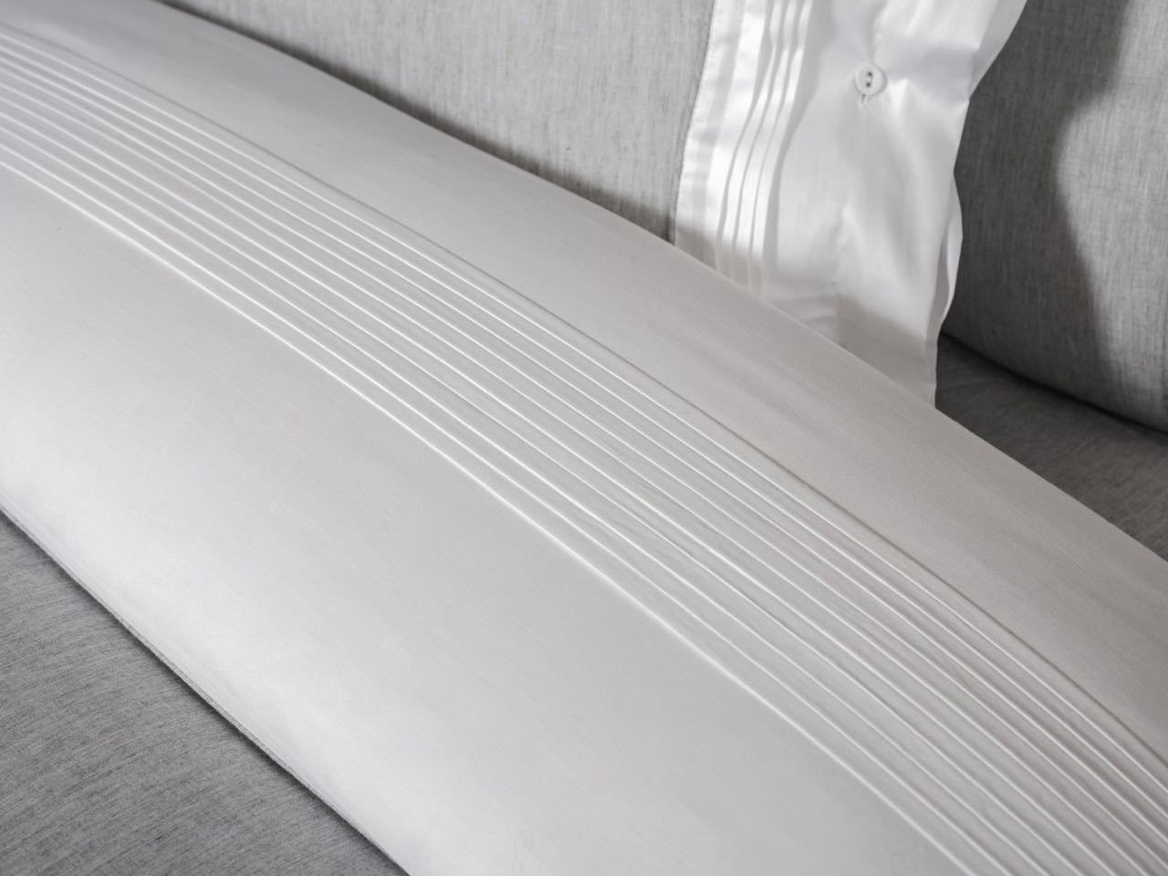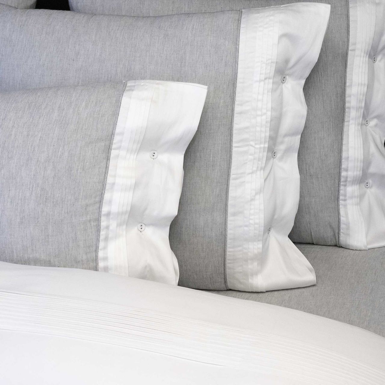 Die lässig edle Bettwäsche Grigio von Flamant ist besonders weich und anschmiegsam und besticht durch die schöne Farbkombination von Hellgrau und Weiß. Durch den gesmokten weißen Rand erhält die hochwertige Bettwäsche aus feiner Baumwolle eine raffinierte Optik. Der Bettbezug hat eine hellgraue und eine weiße Seite, die man einmal umschlagen kann, so daß der dekorative weiße Rand zu sehen ist. Der Kissenbezug hat eine dekorative weiße breite angesetzte Knopfleiste, beim Bettbezug ist die Knopfleiste verdeckt.