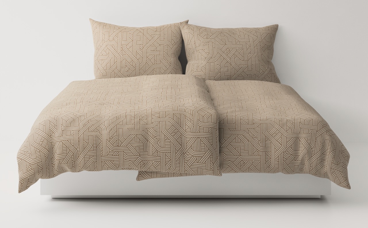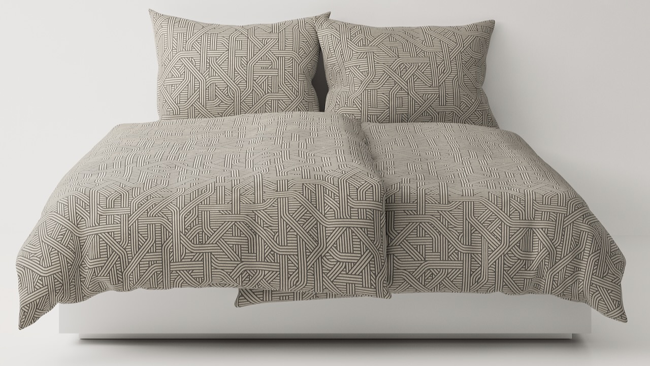 Diese edle Bettwäsche aus Reinleinen von Leitner Leinen im modernen Dessin Confusion wird geprägt durch das raffiniert gewebte Muster, bei dem Kordelstränge einem gordischen Knoten gleich über- und untereinander zu laufen scheinen. Sie verlaufen diagonal, horizontal oder vertikal und verflechten sich ineinander wie das Leinen beim Weben selbst und verleihen der hochwertigen Bettwäsche eine gradlinige Optik.
