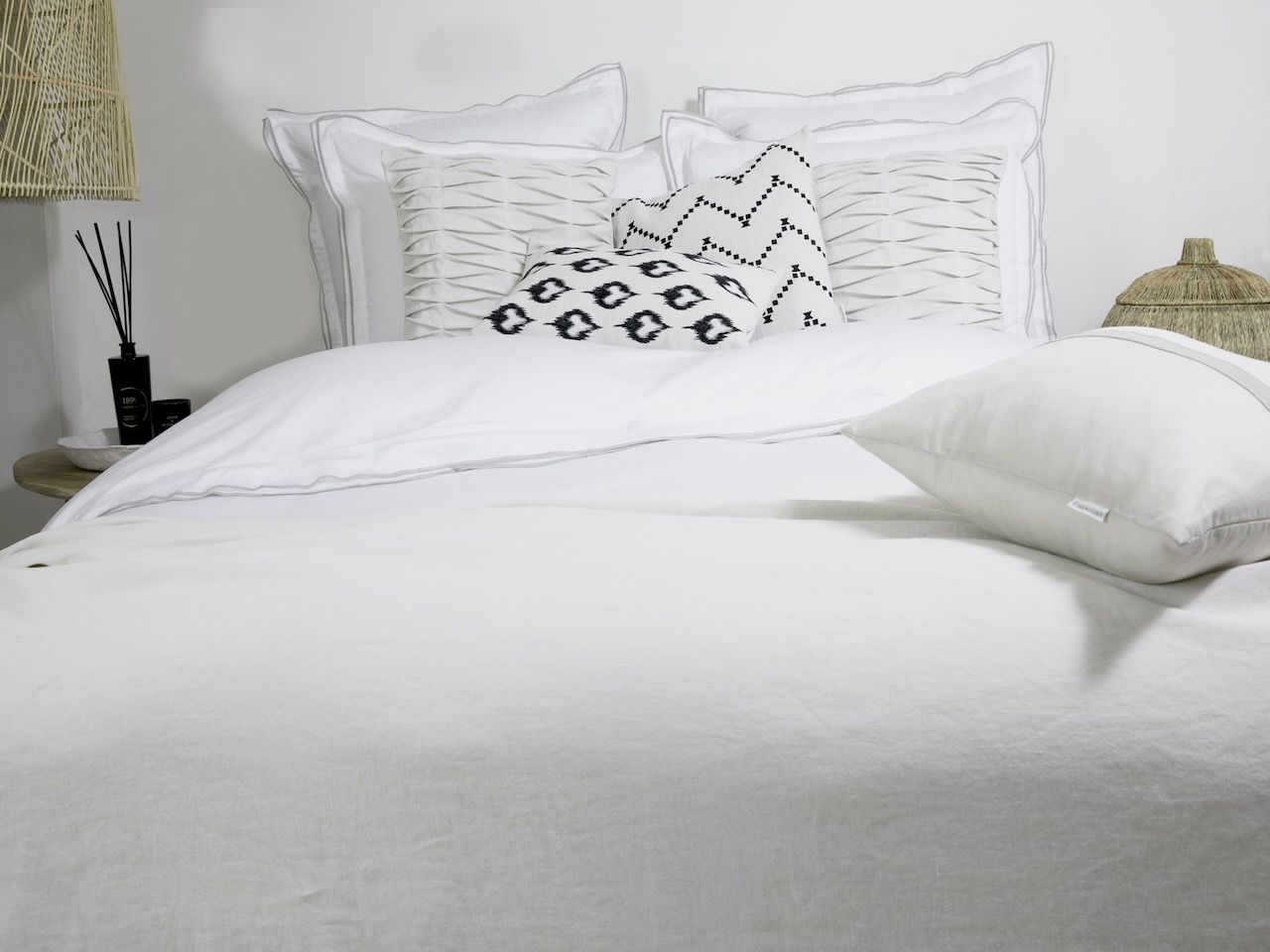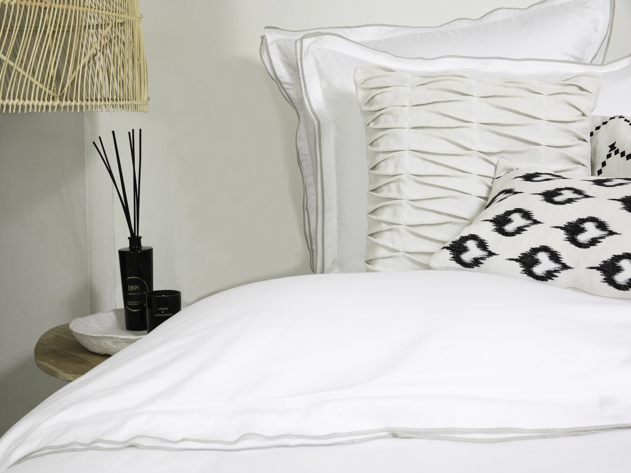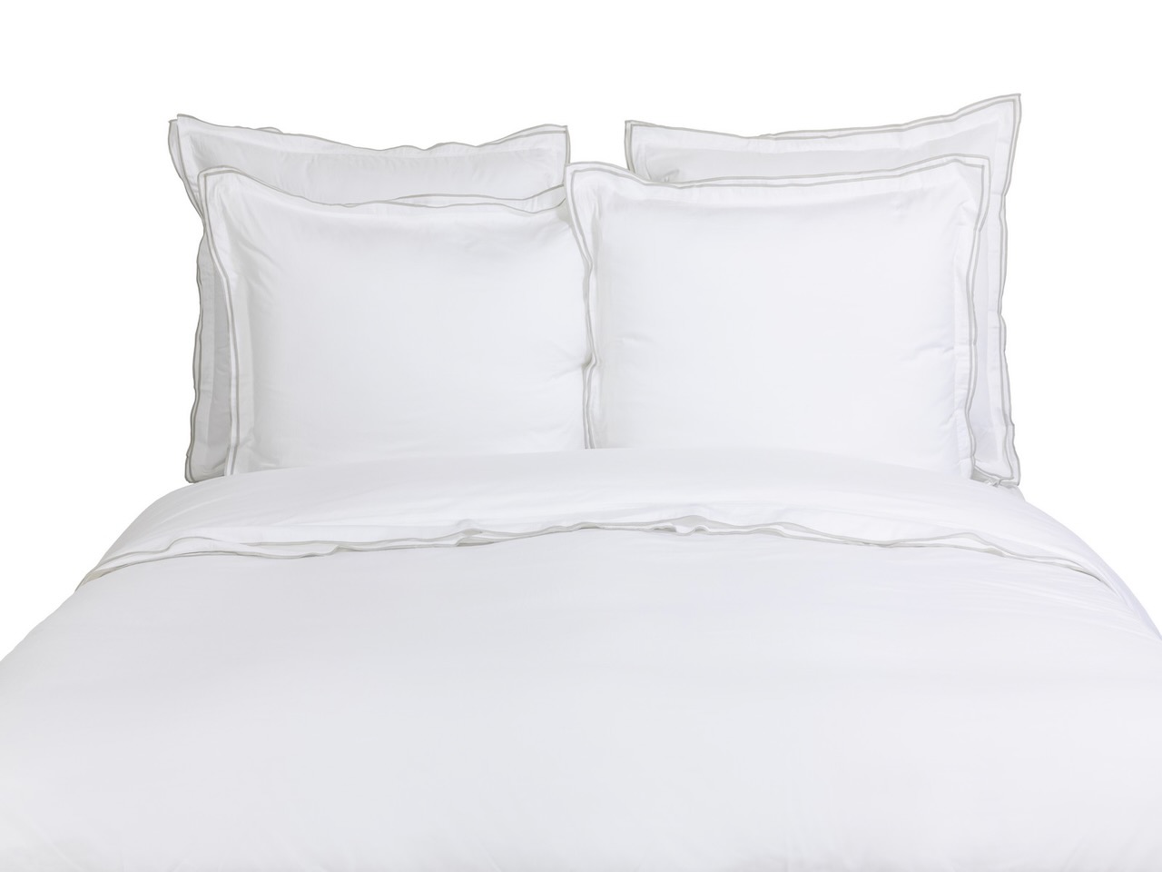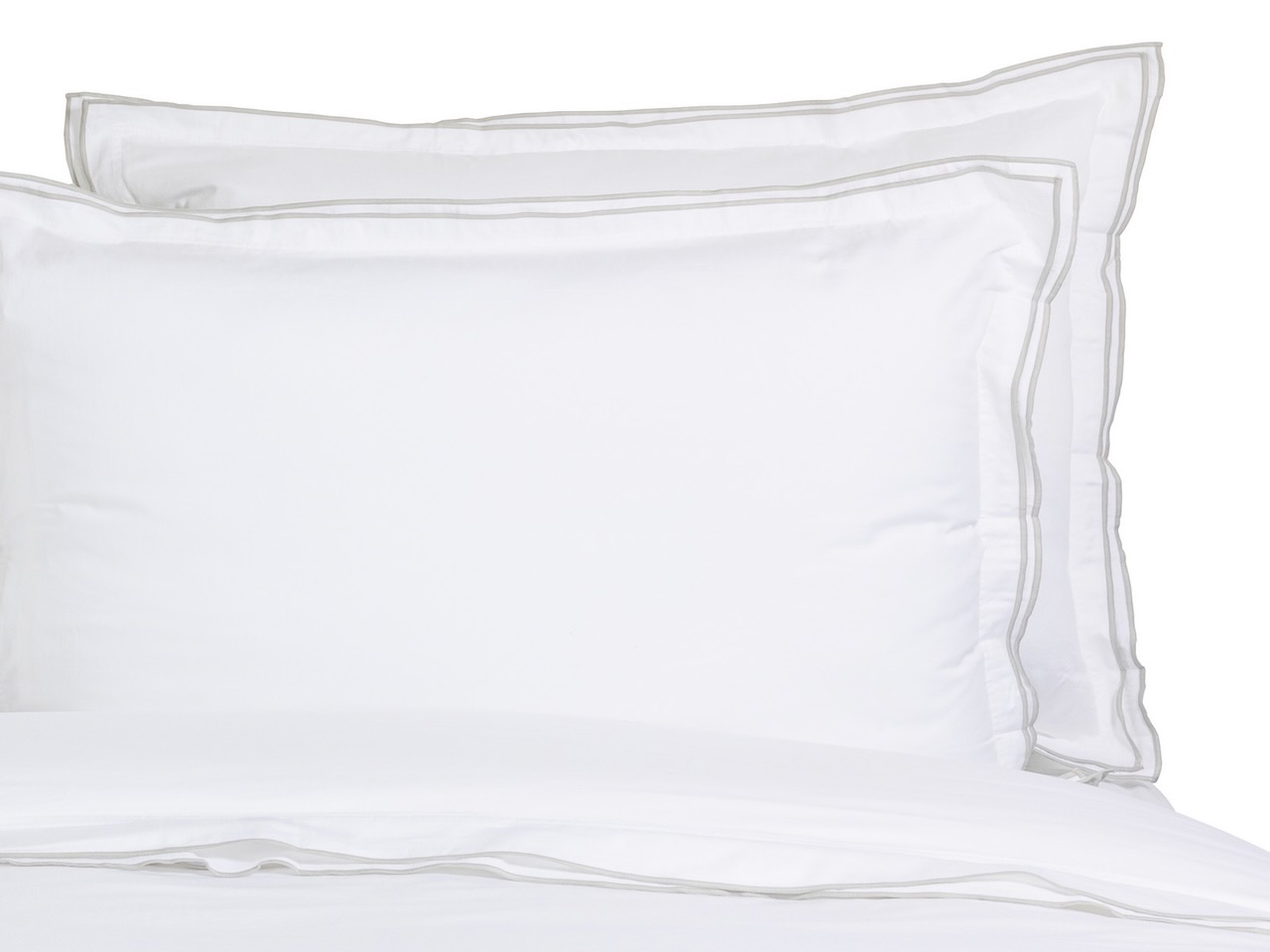 Die feine Bettwäsche Triple von Flamant besticht durch den weichen Baumwollsatin und das schlichte edle Design. Bettbezug und Kissenbezug haben einen dreifachen Stehsaum der durch eine schöne Paspelierung an den Aussenseiten eingefasst wird, was der edlen Bettwäsche eine besondere Raffinesse verleiht. Der feine Baumwollsatin dieser hochwertigen Bettwäsche ist vorgewaschen, wodurch die hochwertige Bettwäsche besonders weich und anschmiegsam ist. Der Kissenbezug ist mit Hotelverschluß gearbeitet, der Bettbezug hat eine verdeckte Knopfleiste.