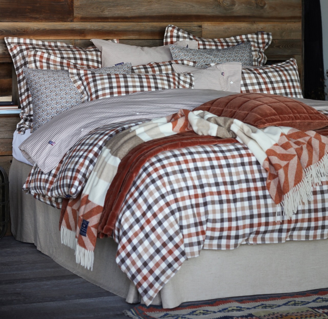 Produktinformationen "Lexington Bettwäsche-Set Karo Flanell rost/braun/offwhite"
