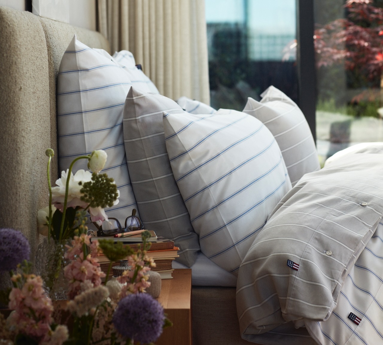 Produktinformationen "Lexington Bettwäsche-Set Pin Point Oxford Stripe grau/weiß 135x200/80x80 cm"
