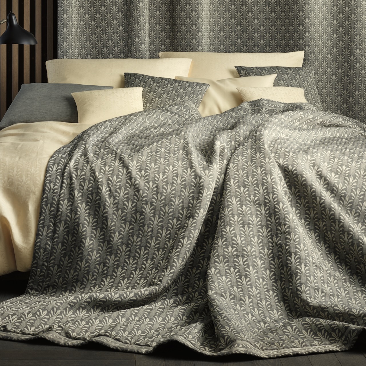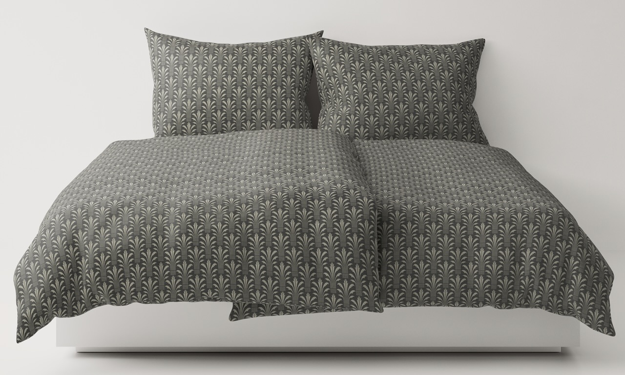 Diese edle Bettwäsche von Leitner Leinen im Dessin Diana aus Halbleinen besticht durch das an das Art-Deco angelehnte stilisierte Palmenmuster, das durch seine filigrane Webart eine wunderschöne Wirkung entfaltet und eine ganz besondere Eleganz ausstrahlt.