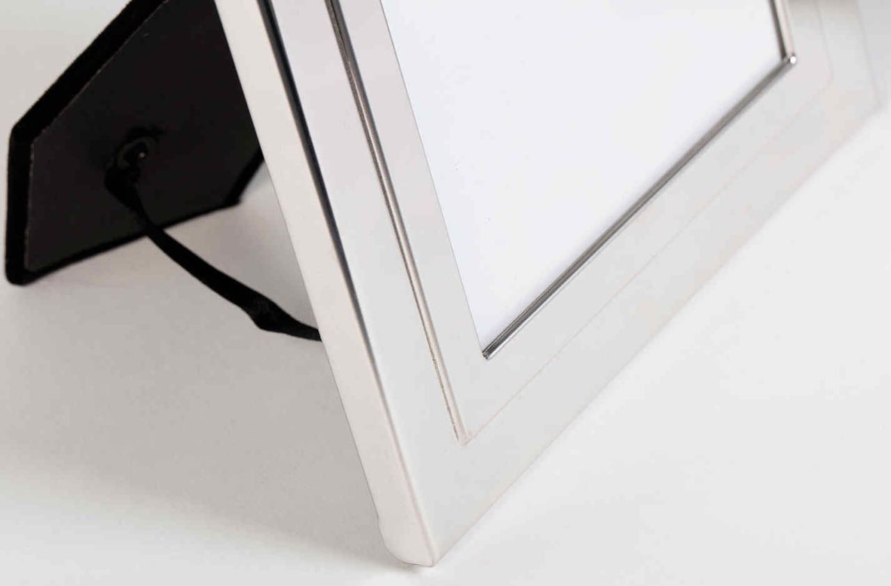 Dieser dekorative Bilderrahmen von Flamant hat einen edlen silbernen Schimmer und umrahmt das Foto auf dezente vornehme Weise. Den schönen Photorahmen gibt es in zwei Größen. Die Aussenmasse des Rahmens betragen 18 x 22,5 cm.