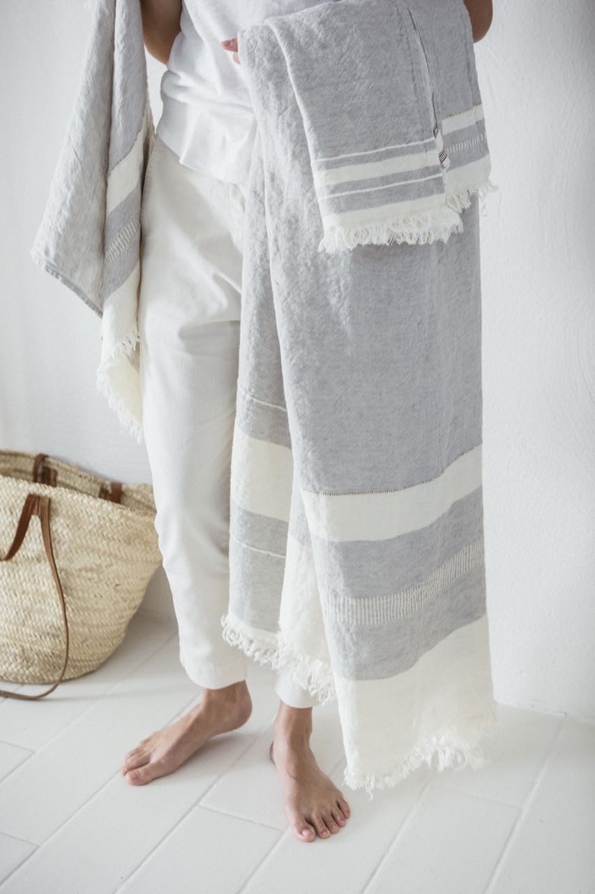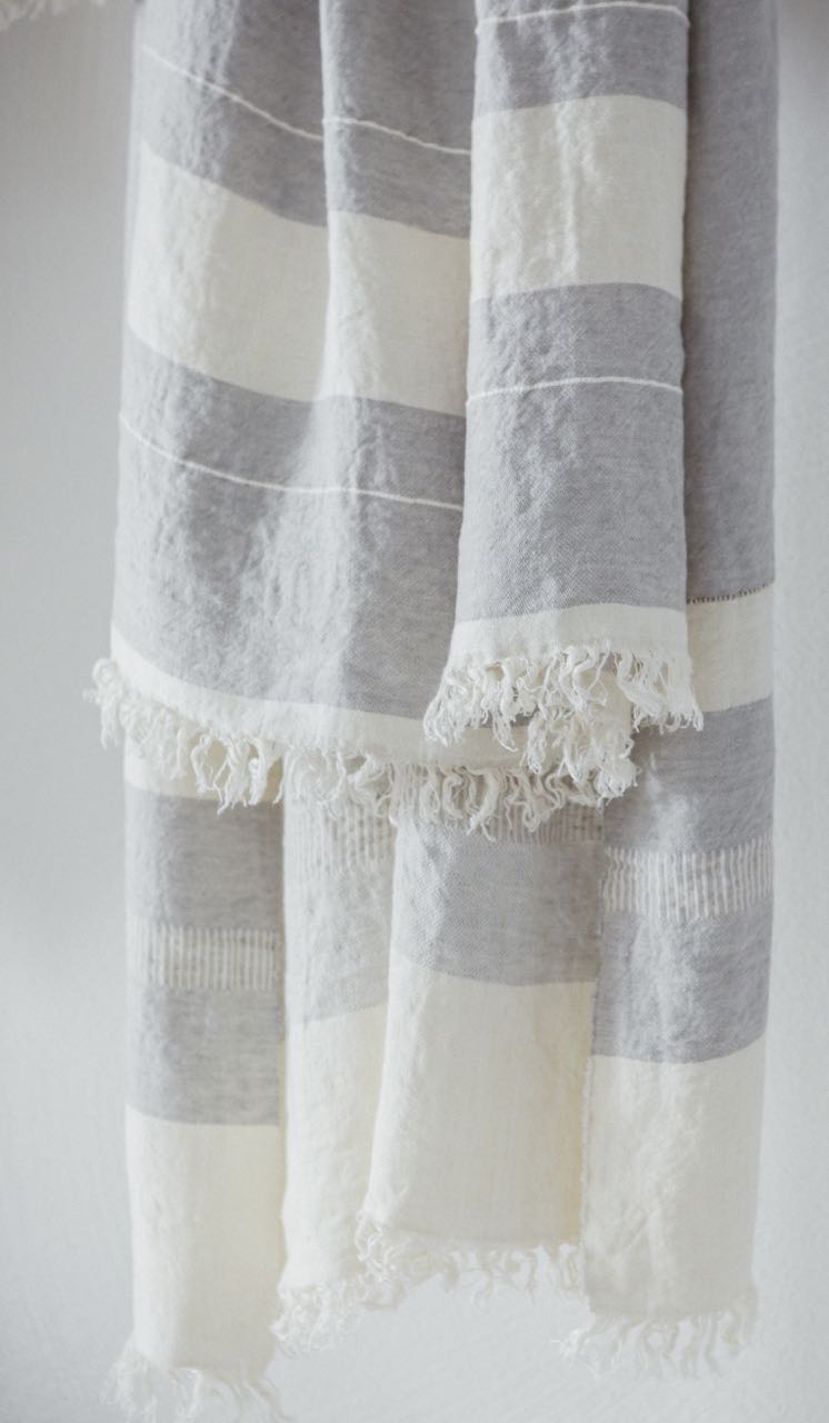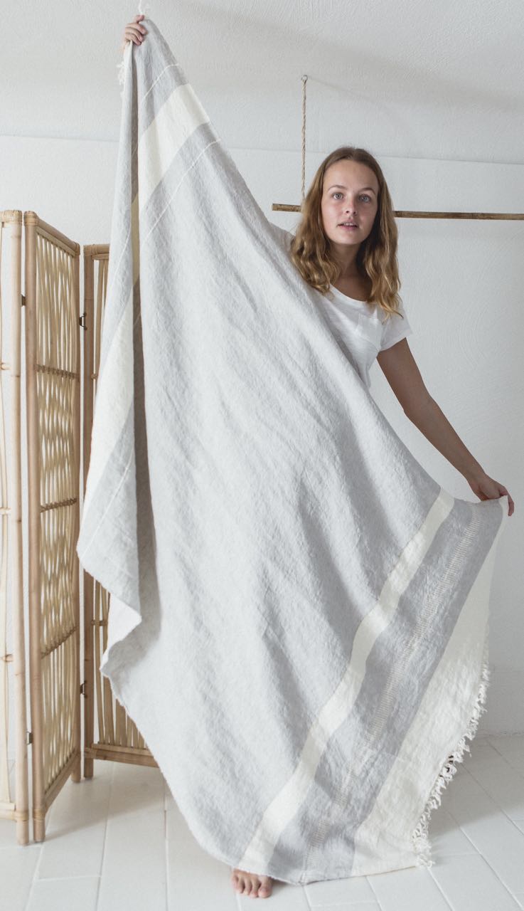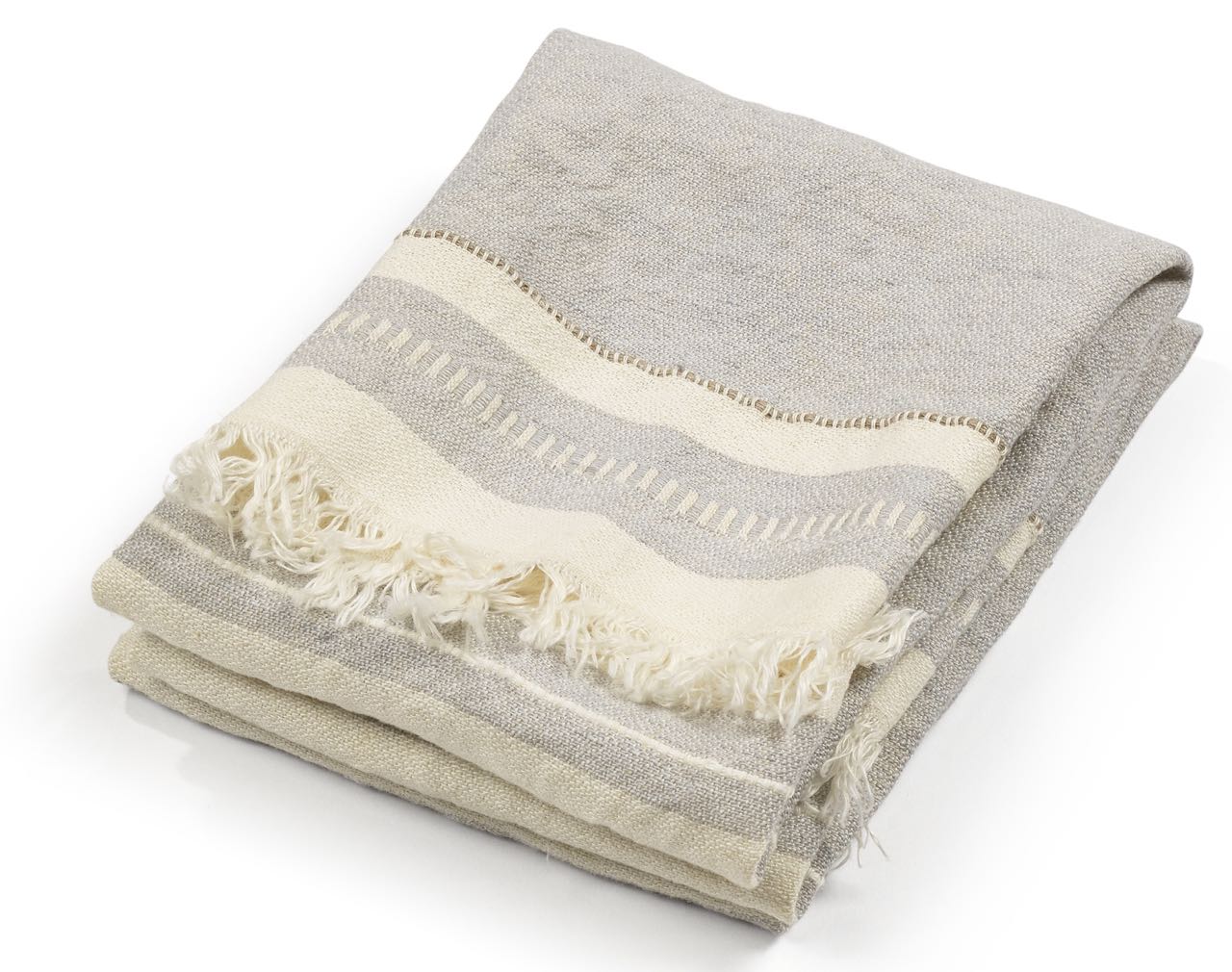 Das edle Leineplaid Gent Stripe von Libeco ist dekorativ und praktisch zugleich. Ob als Strandtuch, Duschtuch, Saunatuch, Badelaken oder dekorative Decke für Sofa, Bett, Sessel oder Liegestuhl, dieses hochwertige Plaid aus Leinen setzt immer besondere Akzente. Das vorgewaschene Leinen ist angenehm weich und anschmiegsam und nimmt durch das glänzende Satingewebe des Stoffes die Feuchtigkeit besonders gut auf. Das schöne klare Hellgrau und die unterschiedlich eingewebten wollweißen Streifen wirken zusammen mit dem fein schimmernden Leinen sehr edel und fügen sich gut in die Umgebung ein. Die farblich abgestimmten Fransen verleihen dem schönen Plaid eine lässige Note.