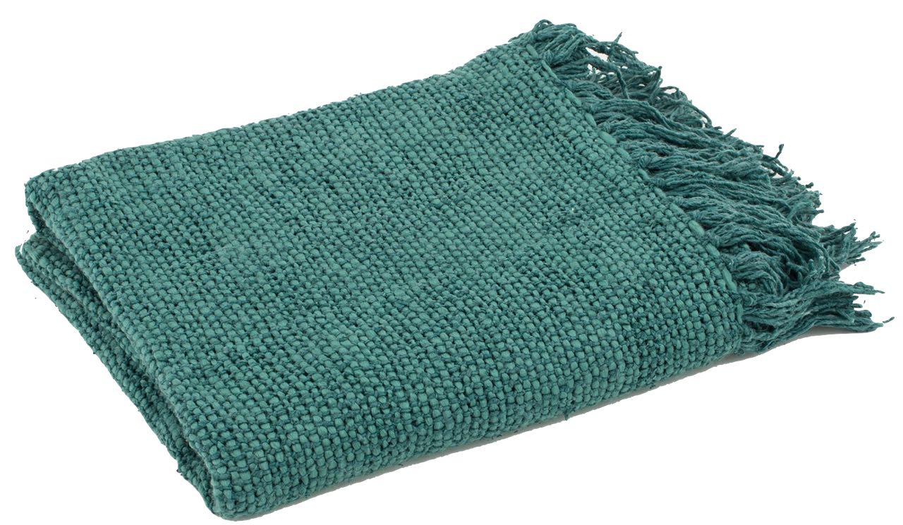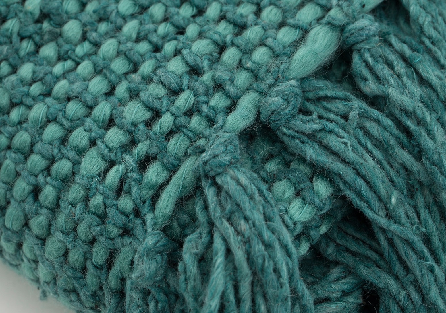 Lässig und edel wirkt diese dekorative Decke von Flamant. Mit ihrer lebendigen Struktur aus grobem Baumwollgarn und fein glänzender Viskose und dem kräftigen Grünton setzt dieses dekorative Plaid von Flamant schöne frische Akzente im Wohnbereich.