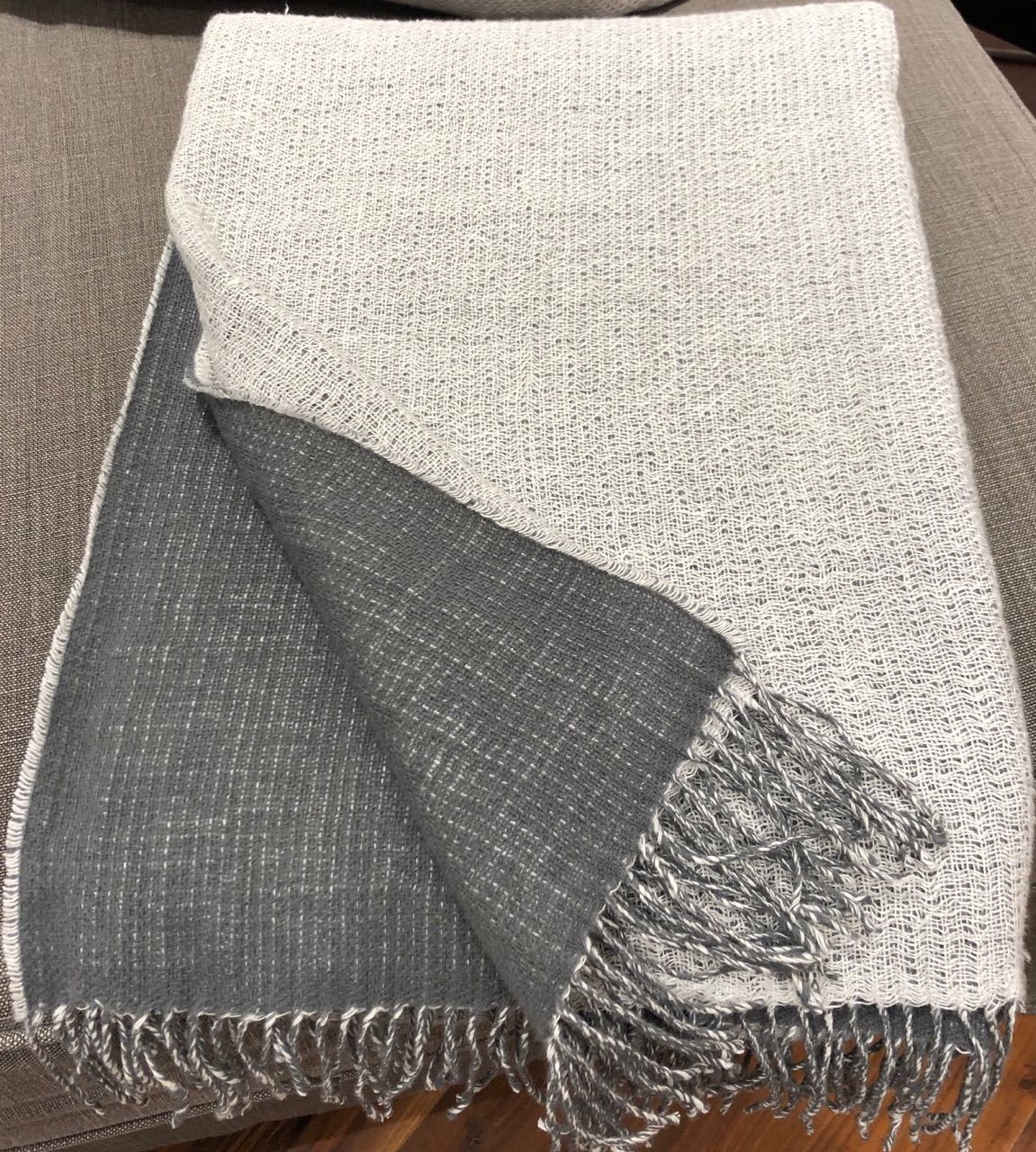 Dieses hochwertige Plaid von Flamant besticht durch die fein abgestimmte Farbkombination aus edlem Grau und hellem Naturton. Das edle Plaid hat auf der Vorderseite ein fein gewebtes helles Leinengewebe und auf der Rückseite weiche graue Schurwolle. Die dekorativen Fransen verleihen der schönen Decke eine edle Lässigkeit. Eine edle Decke mit feiner Struktur und angenehmer Haptik.