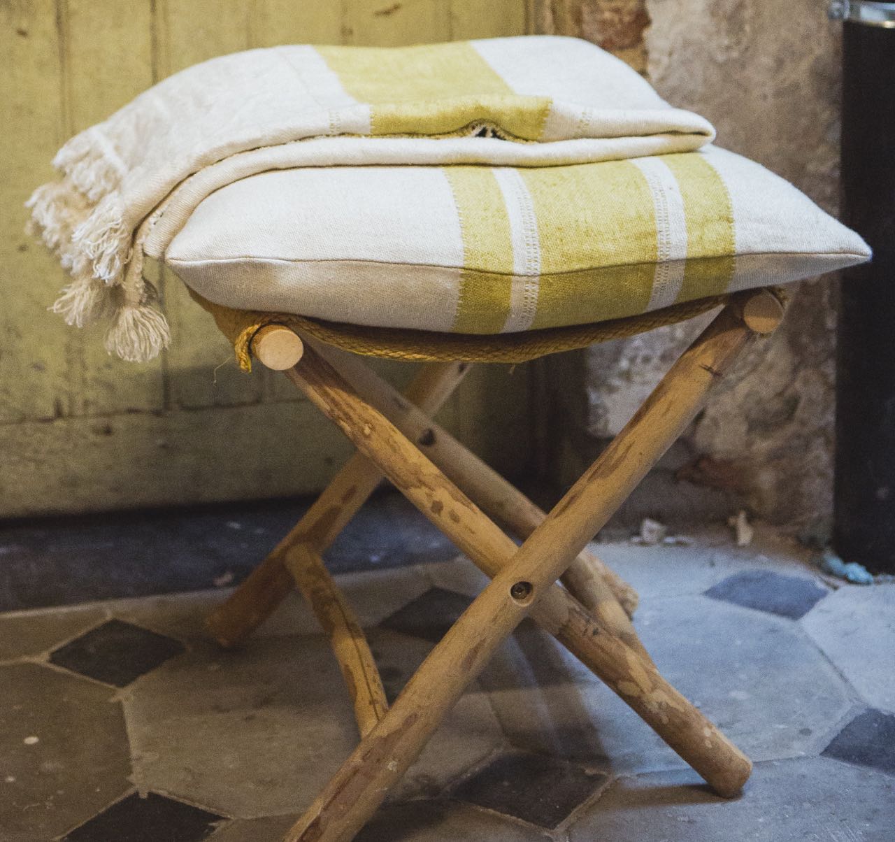 Produktinformationen "Libeco Leinenplaid Mustard Stripe gelb/wollweiß"
