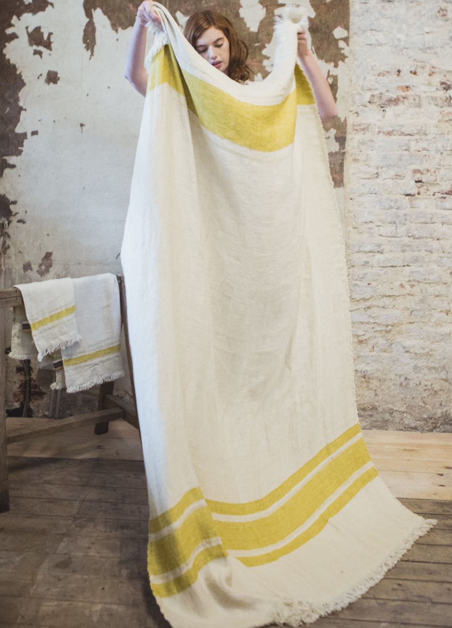 Das hochwertige Leinenplaid Mustard Stripe von Libeco ist dekorativ und praktisch zugleich. Ob als Strandtuch, Duschtuch, Saunatuch, Badelaken oder dekorative Decke für Sessel, Sofa, Bett oder Liegestuhl, dieses hochwertige Plaid aus Leinen setzt immer besondere Akzente. Das vorgewaschene Leinen ist angenehm weich und anschmiegsam und nimmt durch das glänzende Satingewebe des Stoffes die Feuchtigkeit besonders gut auf. Das schöne warme Gelb auf wollweißem Grund wirkt zusammen mit dem fein schimmernden Leinen sehr edel. Die Fransen verleihen dem schönen Badetuch eine lässige Note.