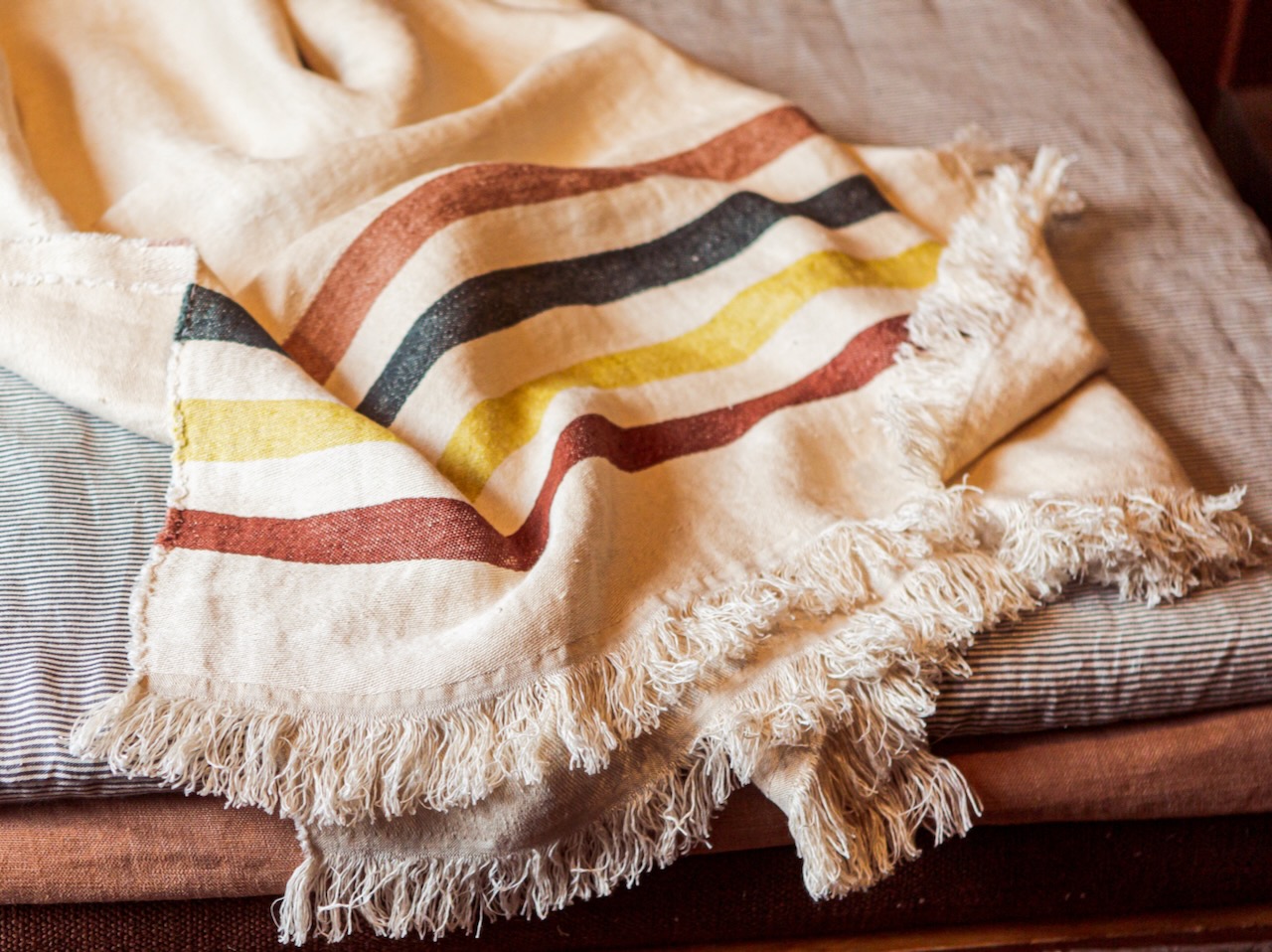 Produktinformationen "Libeco Leinenplaid Lake Stripe natur/braun/grün/gelb/rose"