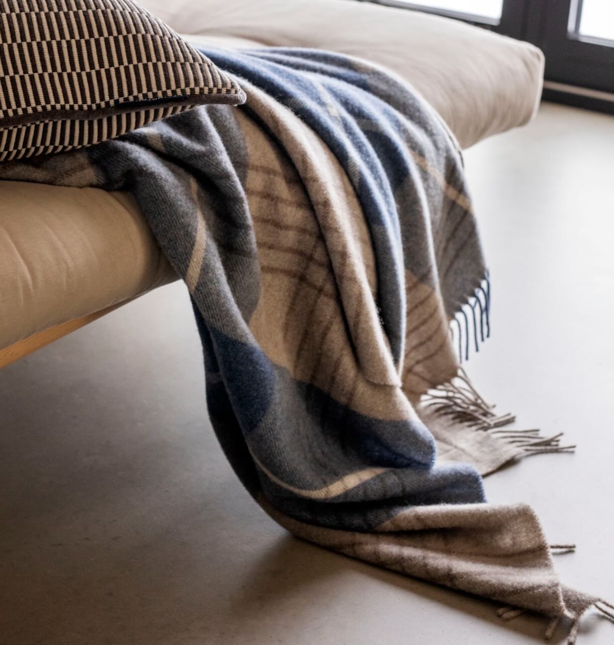 Produktinformationen "Lexington Decke Wool Throw Karo beige/blau"