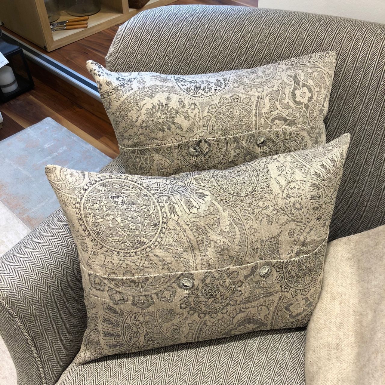 Der hochwertige Kissenbezug wird von Leitner Leinen in diesem edlen Dessin Intarsio in der gewählten Farbe und Größe nach Maß gefertigt. Zusätzlich zu den gezeigten Maßen sind auf Anfrage fast alle beliebigen Maße möglich.