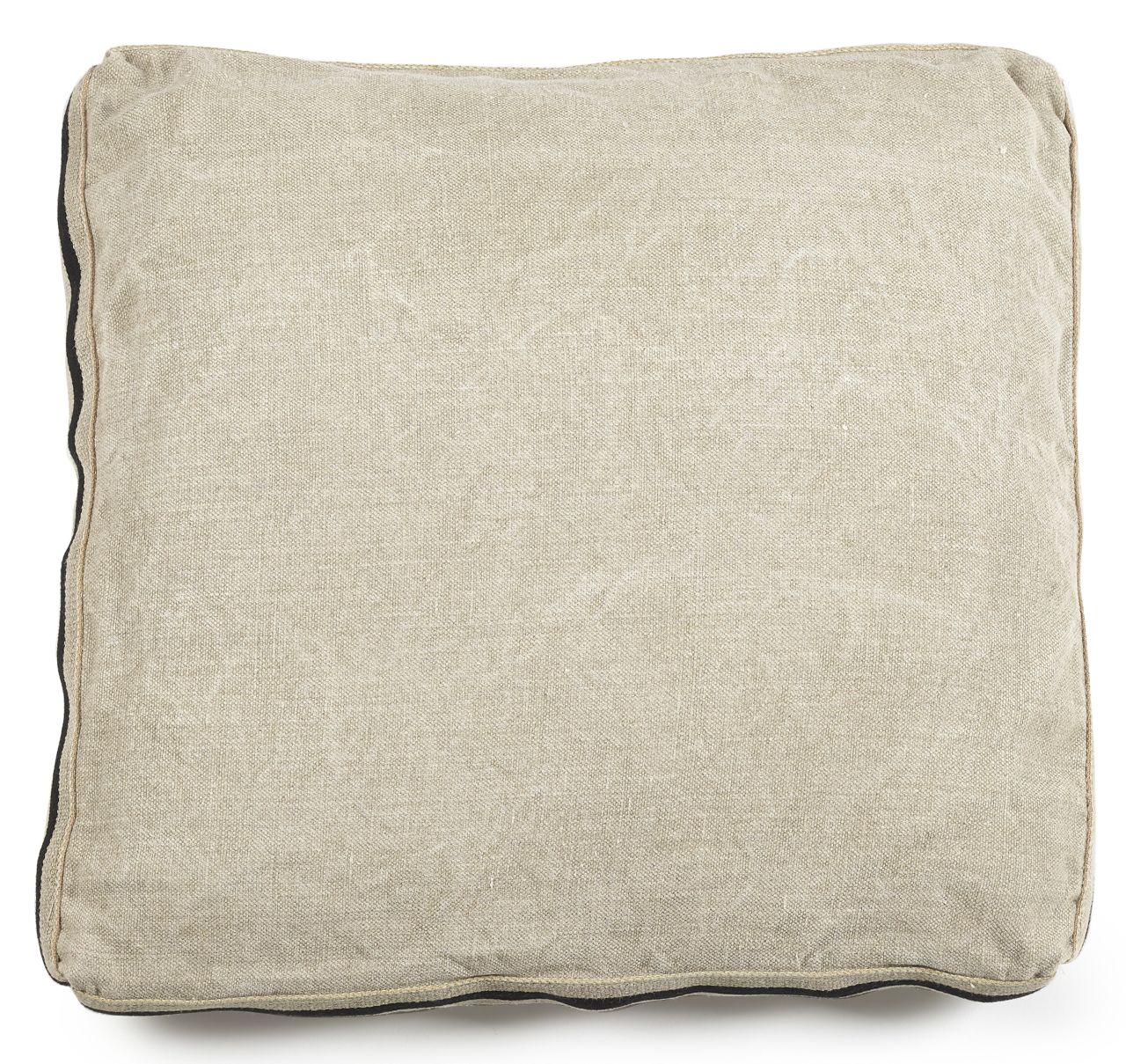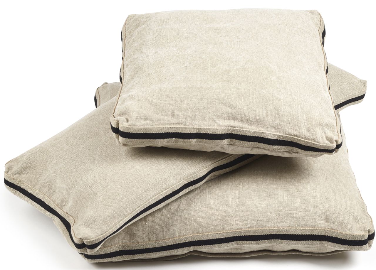 Dieses lässige Kissen von Libeco ist dekorativ und strapazierfähig zugleich. Durch das stonewashed Leinen ist dieses hochwertige Kissen sehr strapazierfähig und hat gleichzeitig einen schönen"Used Look". Alle Seitenkanten des flachsfarbenen Kissens sind mit einer schwarz gestreiften Bördüre abgesetzt und verleihen dem edlen Kissen eine interessante Optik. Ein legeres und dekoratives Kissen für Drinnen und Draußen. Zum lässigen Stil passt der dezente Reißverschluss.