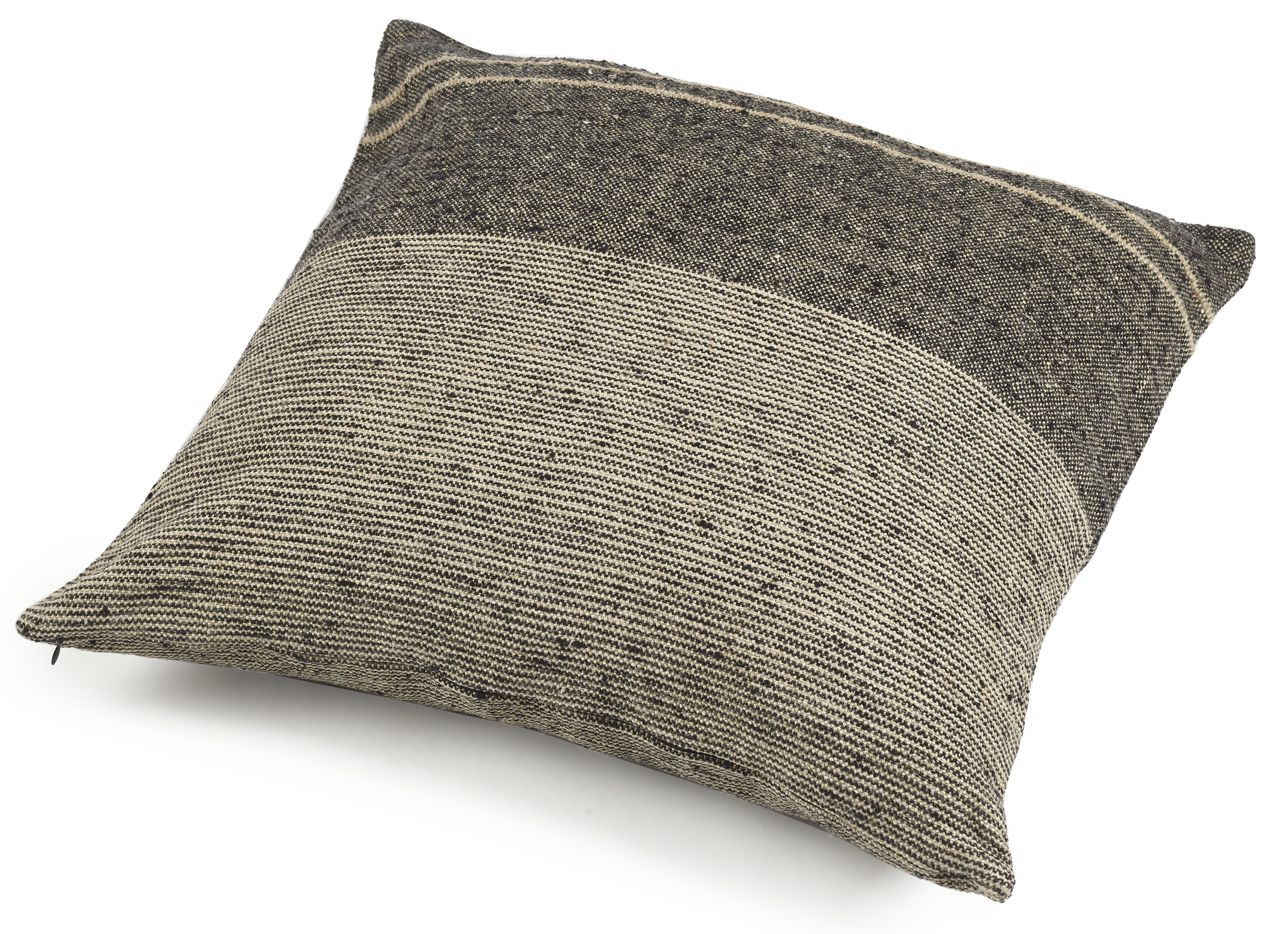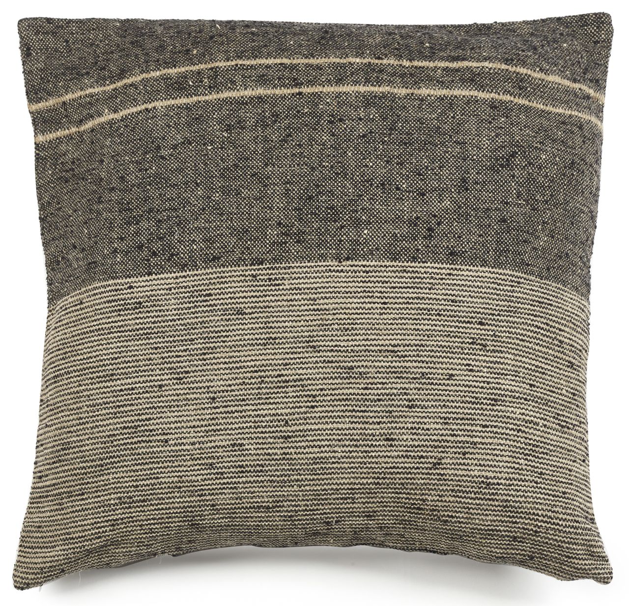 Dieses schöne Kissen von Libeco hat eine sehr gefällige Optik. Es hebt sich heraus durch die beigen Streifen auf anthrazit meliertem Grund. Durch die unterschiedlich breiten Streifen und den farblichen Melangeeffekt wirkt das edle Kissen besonders lebendig. Die rustikale Struktur des Leinen- Baumwollgewebes verstärkt die lässige Optik. Ein legeres und dekoratives Kissen mit Reißverschluss für Wohnzimmer und Terrasse.