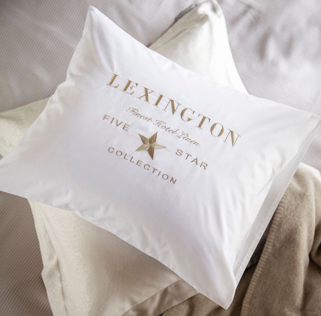 Dieses dekorative Kissen setzt schöne Akzente und verleiht Schlafzimmer als auch Wohnzimmer eine edle und lässige Optik. Das feine weiße Dekokissen ist aus festem, relativ glattem Baumwollperkal gefertigt und ist auf der Vorderseite mit beigefarbenem Lexington Schriftzug und einem dekorativen Emblem bestickt. Ein feines und edles Kissen, das besondere Akzente setzt.
