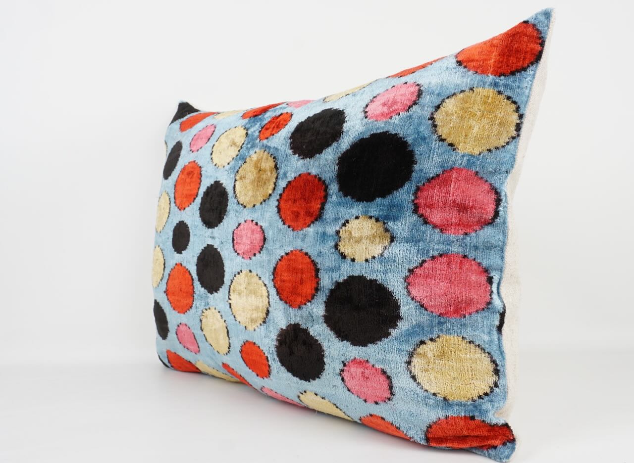 Produktinformationen "Kissenbezug Seide Tupfen blau/rot/gelb/schwarz 40x60 cm"