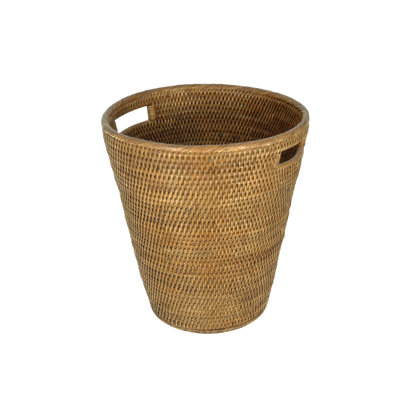 Dieser schöne runde Papierkorb aus hochwertigem Rattan ist robust und dekorativ zugleich. In aufwendiger Handarbeit hochwertig verarbeitet ist der dekorative Papierkorb zeitlos und schön, gleichzeitig funktional und strapazierbar. Durch seine wasserabweisende Lasur lässt sich der hochwertige Papierkorb gut reinigen und ist praktisch überall einsetzbar. Er eignet sich für den Wohnraum genauso wie für Küche oder Bad und verleiht dem Zuhause eine warme persönliche Note. In schönem Braun setzt der praktische Korb die richtigen Akzente.
