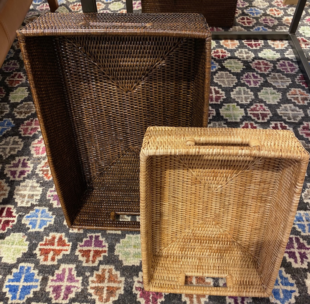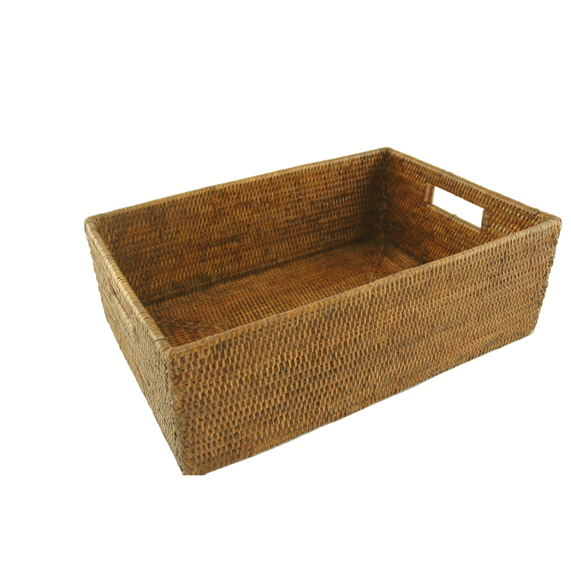 Der dekorative Rectangular Korb aus hochwertigem Rattan ist sowohl als hohes Tablett als auch als Zeitungskorb oder einfach zum Verstauen geeignet. In aufwendiger Handarbeit hochwertig verarbeitet ist der praktische Korb zeitlos und schön, gleichzeitig funktional und strapazierbar. Durch seine wasserabweisende Lasur lässt sich der schöne Korb gut reinigen und ist praktisch überall einsetzbar. Er eignet sich für den Wohnraum genauso wie für Küche oder Bad und verleiht dem Zuhause eine warme persönliche Note. In schönem Braun setzt er die richtigen Akzente.