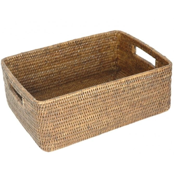 Dieser praktische Storage Korb aus hochwertigem Rattan ist robust und dekorativ zugleich. In aufwendiger Handarbeit hochwertig verarbeitet ist der dekorative Korb zeitlos und schön, gleichzeitig funktional und strapazierbar. Durch seine wasserabweisende Lasur lässt sich der hochwertige Korb gut reinigen und ist praktisch überall einsetzbar. Der schöne Korb eignet sich für den Wohnraum genauso wie für Küche oder Bad und verleiht dem Zuhause eine warme persönliche Note. In schönem Braun setzt er die richtigen Akzente.