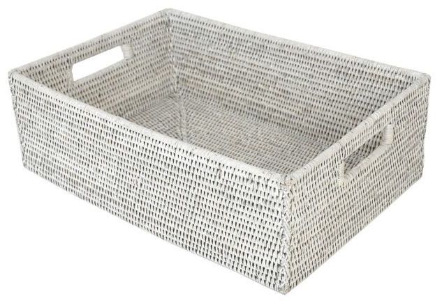 Der dekorative Rectangular Korb aus hochwertigem Rattan ist sowohl als hohes Tablett als auch als Zeitungskorb oder einfach zum Verstauen geeignet. In aufwendiger Handarbeit hochwertig verarbeitet ist der praktische Korb zeitlos und schön, gleichzeitig funktional und strapazierbar. Durch seine wasserabweisende Lasur lässt sich der schöne Korb gut reinigen und ist praktisch überall einsetzbar. Er eignet sich für den Wohnraum genauso wie für Küche oder Bad und verleiht dem Zuhause eine warme persönliche Note. In schönem Weiß setzt er die richtigen Akzente.