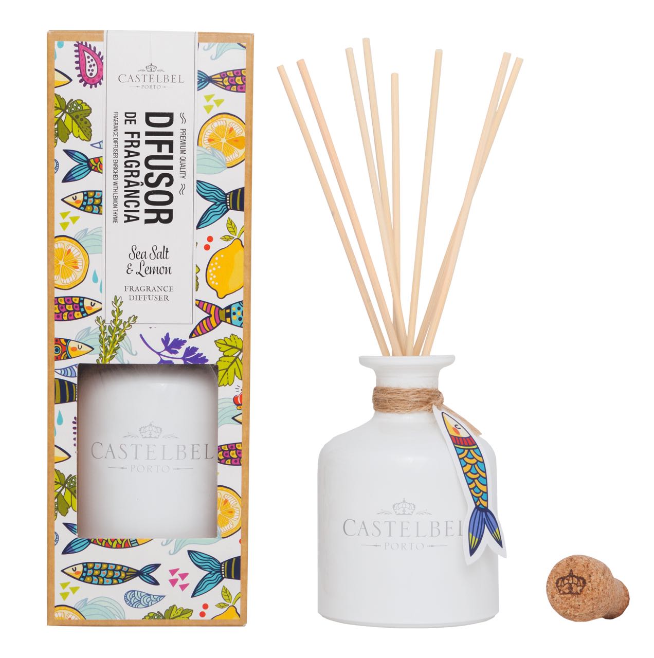 Das schöne Sardinen-Duftbouquet von Castelbel ist das passende Geschenk nicht nur für Fischliebhaber. Die ausgefallene Duftkreation aus Meersalz und Limone verleiht dem edlen Duftflakon eine frische, leicht salzige Note und der Umgebung eine schöne frische Brise. Das edle Duftbouquet hat ein hochwertiges weißes Glasgefäß und wird mit passenden Duftstäbchen geliefert. Die dekorative Kartonverpackung mit den schönen Fischmotiven unterstreicht die Wertigkeit des fein duftenden Bouquets.